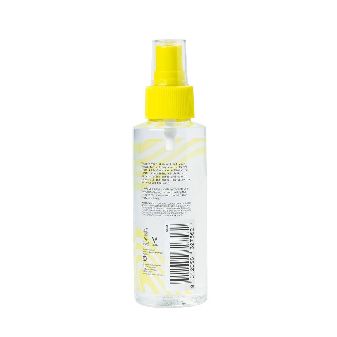Once you have completed your entire make up routine, hold the spritz bottle about 20cm from your face. Spritz two to three times to set your make up and help you feel fresh!