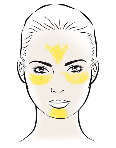 You can also apply the banana powder to any areas of your face that need brightening; on your forehead, the bridge of your nose and on your chin.