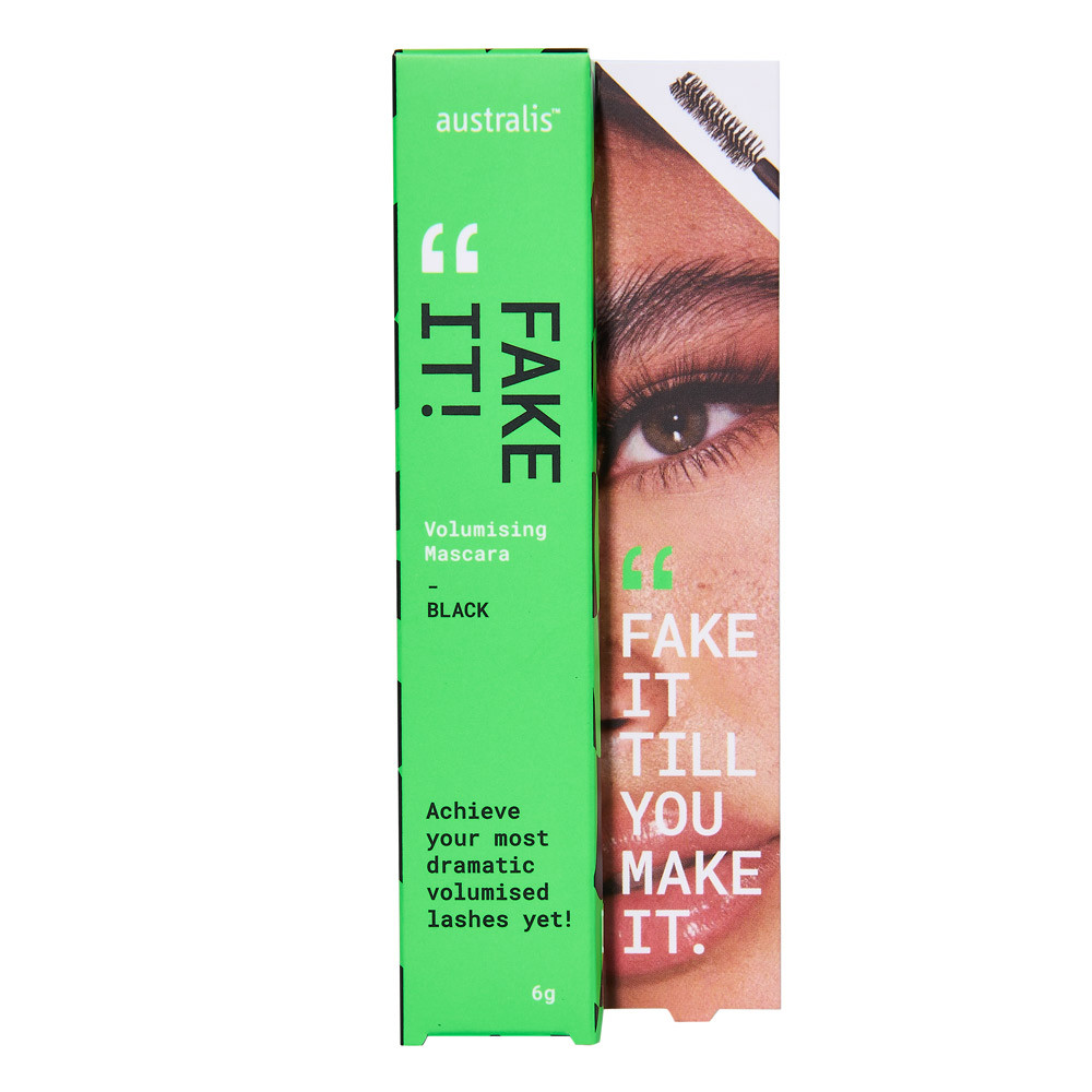 Fake It! Volumising Mascara has an antioxidant rich, black formula that is packed full of lash-loving goodies to strengthen, lengthen and lift lashes without clumping or smudging.